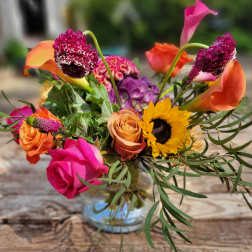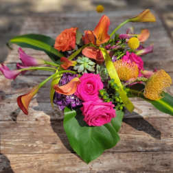 The arrangement design will replicate the color palette and silhouette as shown. Every effort will be made to duplicate the content. Market/ seasonal availability will be the determining factor regarding specific flower inclusion.