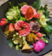 The arrangement design will replicate the color palette and silhouette as shown. Every effort will be made to duplicate the content. Market/ seasonal availability will be the determining factor regarding specific flower inclusion.