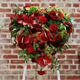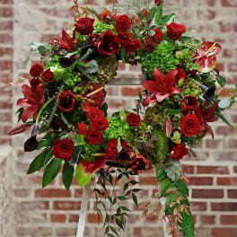 The arrangement design will replicate the color palette and silhouette as shown. Every effort will be made to duplicate the content. Market/ seasonal availability will be the determining factor regarding specific flower inclusion.